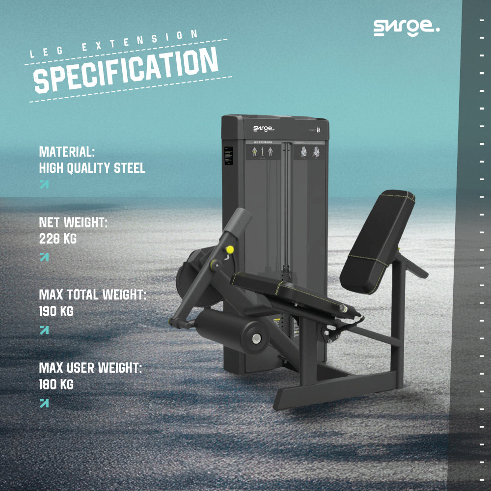 SURGE Commercial Leg Extension adalah mesin latihan kaki profesional yang dirancang untuk mengisolasi dan menguatkan otot quadriceps dengan gerakan yang stabil, presisi, dan aman. Dengan konstruksi commercial grade dan sistem adjust yang ergonomis, alat ini sangat ideal untuk gym komersial maupun home gym premium.