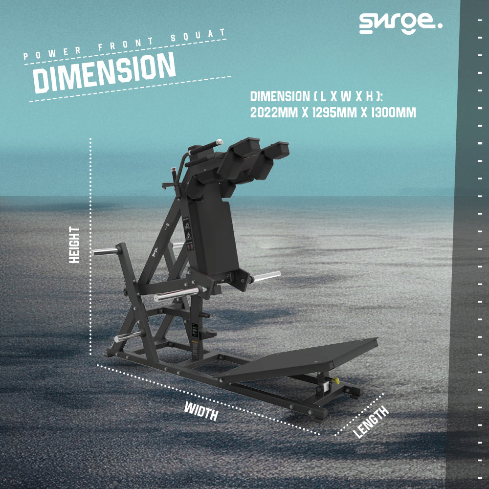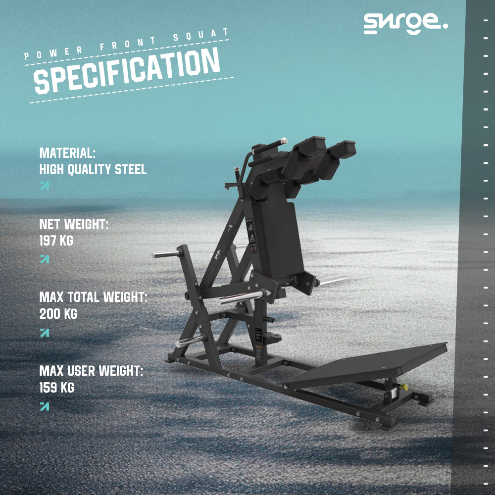 SURGE Commercial Power Front Squat adalah mesin latihan beban profesional tipe plate-loaded yang dirancang khusus untuk melatih kekuatan tubuh bagian bawah dengan fokus utama pada otot paha depan (Quadriceps) dan paha belakang (Hamstrings). Masuk dalam lini premium "POWER LIFE", mesin ini menawarkan stabilitas luar biasa dan keamanan lebih tinggi dibandingkan latihan front squat konvensional, menjadikannya pilihan utama untuk gym komersial profesional.
