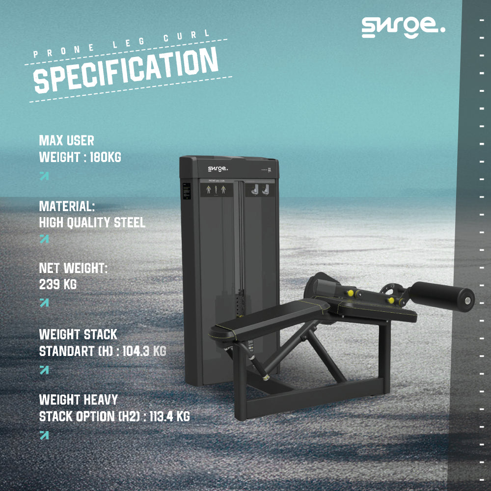 SURGE Commercial Prone Leg Curl – Strength Machine adalah mesin latihan profesional yang dirancang untuk mengisolasi dan memperkuat otot hamstring melalui gerakan curl yang stabil, halus, dan presisi. Dengan posisi latihan tengkurap (prone), mesin ini memberikan aktivasi otot yang lebih fokus dan aman. Cocok untuk gym komersial, pusat kebugaran, maupun home gym premium.