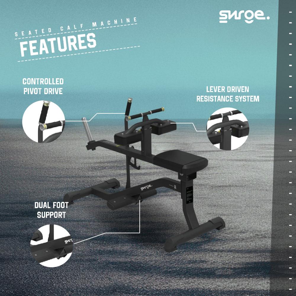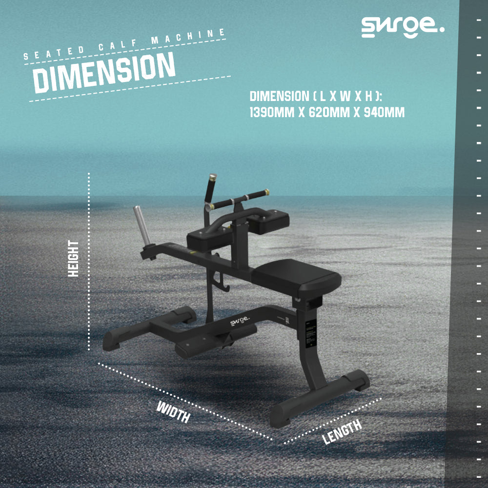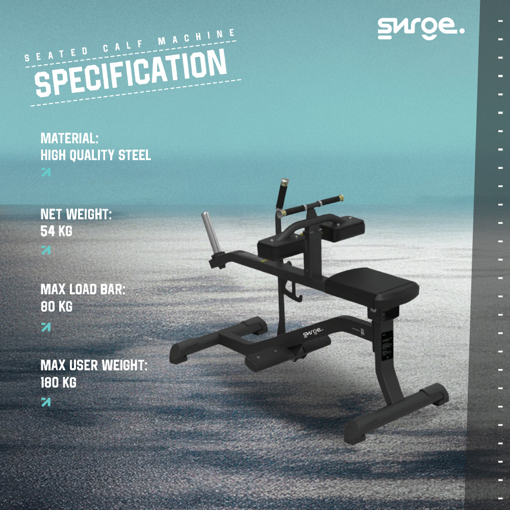 SURGE Seated Calf Machine adalah mesin latihan kekuatan profesional yang dirancang khusus untuk mengisolasi dan melatih otot betis (Gastrocnemius dan Soleus) dalam posisi duduk. Alat ini memberikan stabilitas maksimal dan jalur gerak yang presisi, memungkinkan pengguna untuk melakukan latihan beban secara intensif tanpa memberikan tekanan berlebih pada punggung bagian bawah. Sangat cocok untuk penggunaan gym komersial tingkat tinggi.