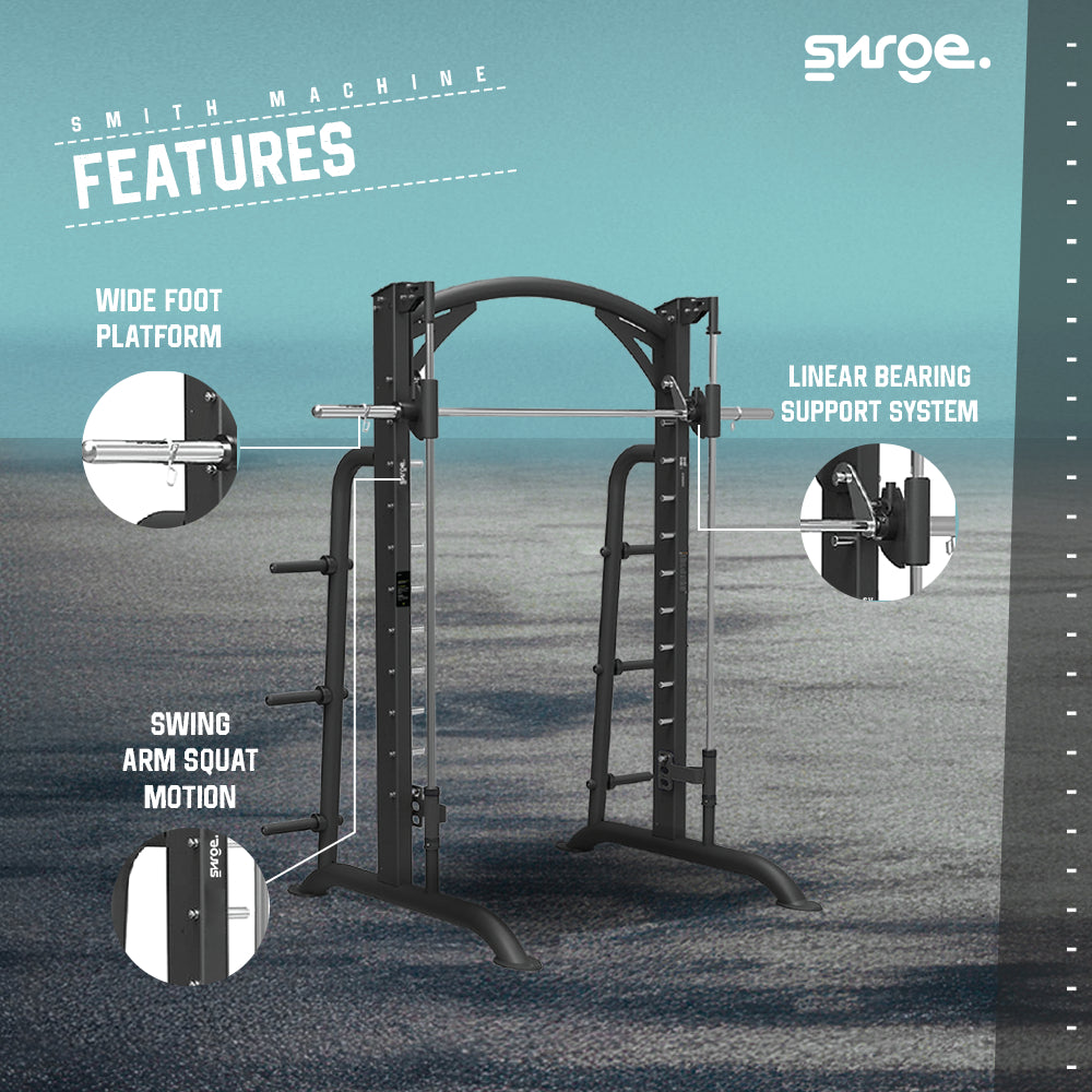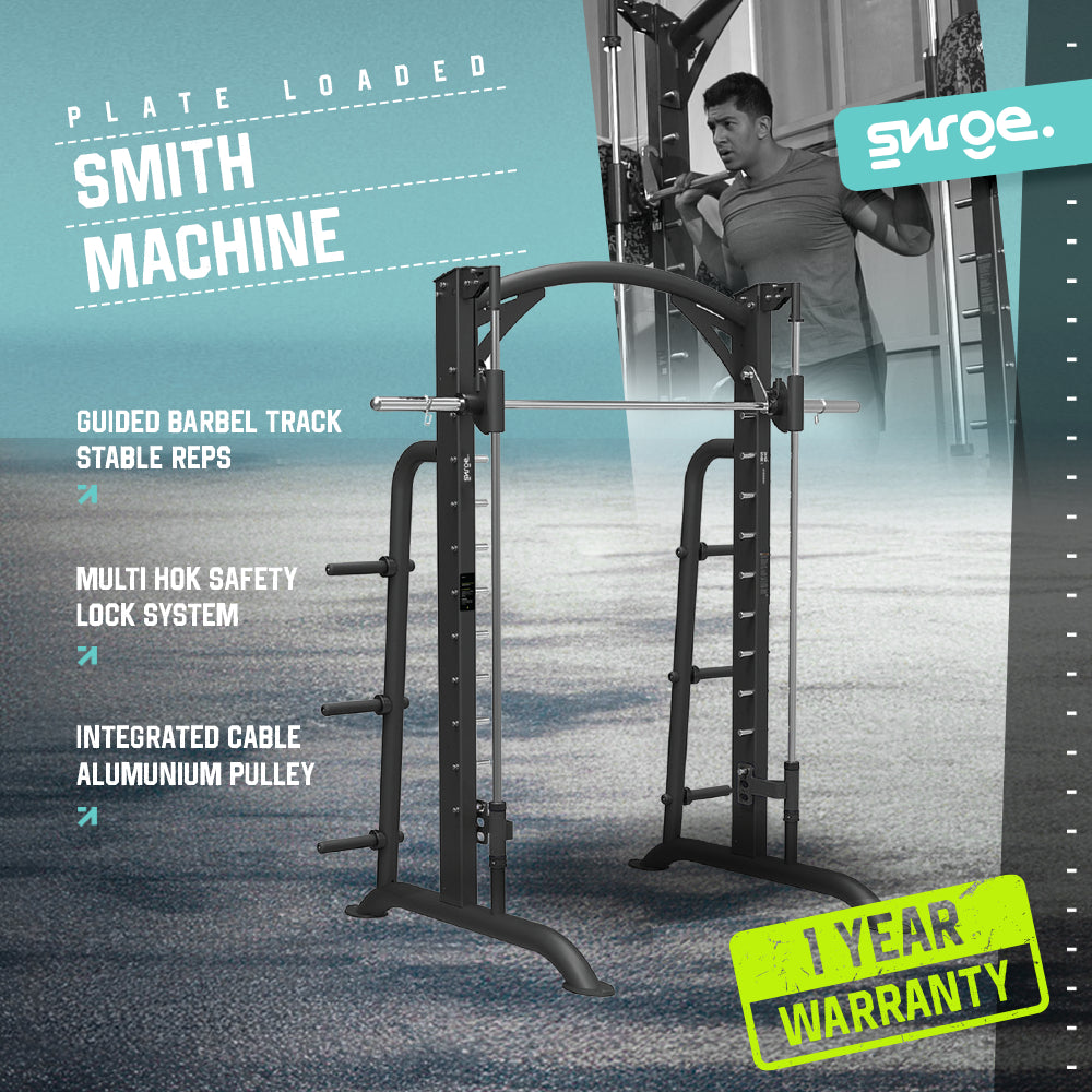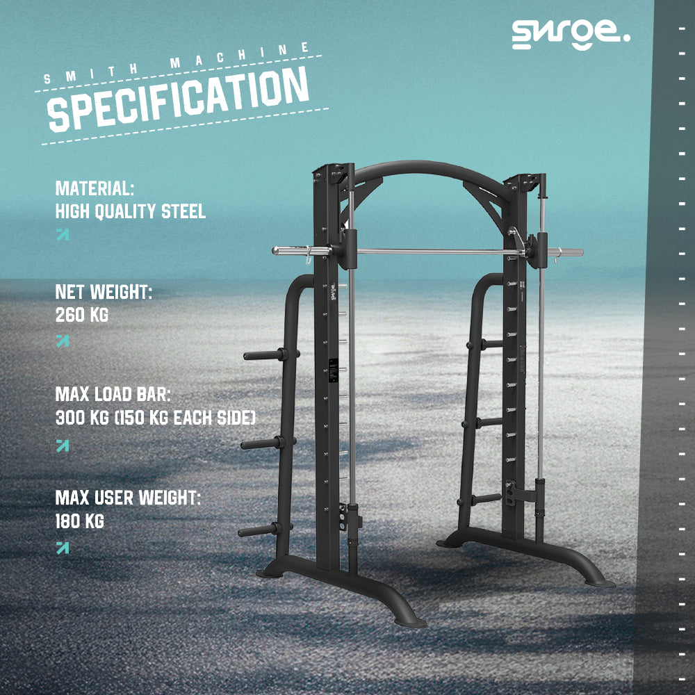 SURGE Commercial Smith Machine adalah mesin latihan beban profesional yang dirancang untuk memberikan keamanan dan stabilitas maksimal dalam berbagai latihan angkat beban. Dengan sistem guided barbell yang bergerak pada jalur linier yang presisi, alat ini memungkinkan pengguna untuk melakukan gerakan seperti squat, bench press, dan shoulder press dengan kontrol penuh, menjadikannya standar wajib untuk gym komersial maupun fasilitas kebugaran premium yang mengutamakan keselamatan pengguna.
